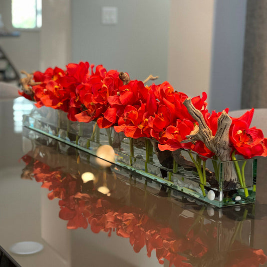 Nur heute – 79% Rabatt!Moderner Glas-Pflanzkübel „Modern Home“ 122 cm mit roten Cymbidien
