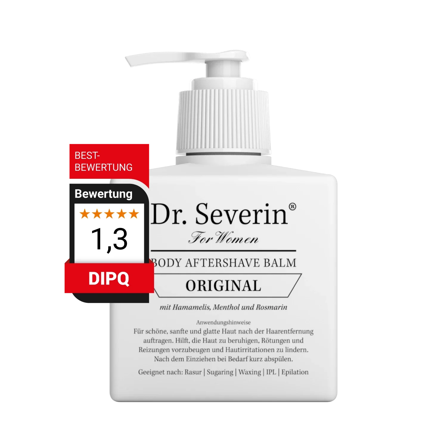 Das Dr. Severin Women Original After Shave bietet einen effektiven Schutz vor Rasierpickeln, Rötungen und Entzündungen nach der Haarentfernung. Wirkt antibakteriell, beruhigend und regenerierend nach Rasur, Waxing, Epilation, Sugaring oder IPL.